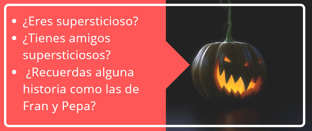 | Primera transcripción Fran: ¡Ay Pepa! Pero, ¿dónde me has traído? Pepa: Fran, no seas cobardica. Tenía ganas de traerte a esta casa rural. Fran: No sé. No parece muy acogedora. Me inquieta. Pepa: ¿Es porque te comenté que está encantada? Son solo habladurías. ¡Bobadas! ¿No te las creerás? Fran: Como sabes soy bastante supersticioso. (Sonido de llave y de puerta) |