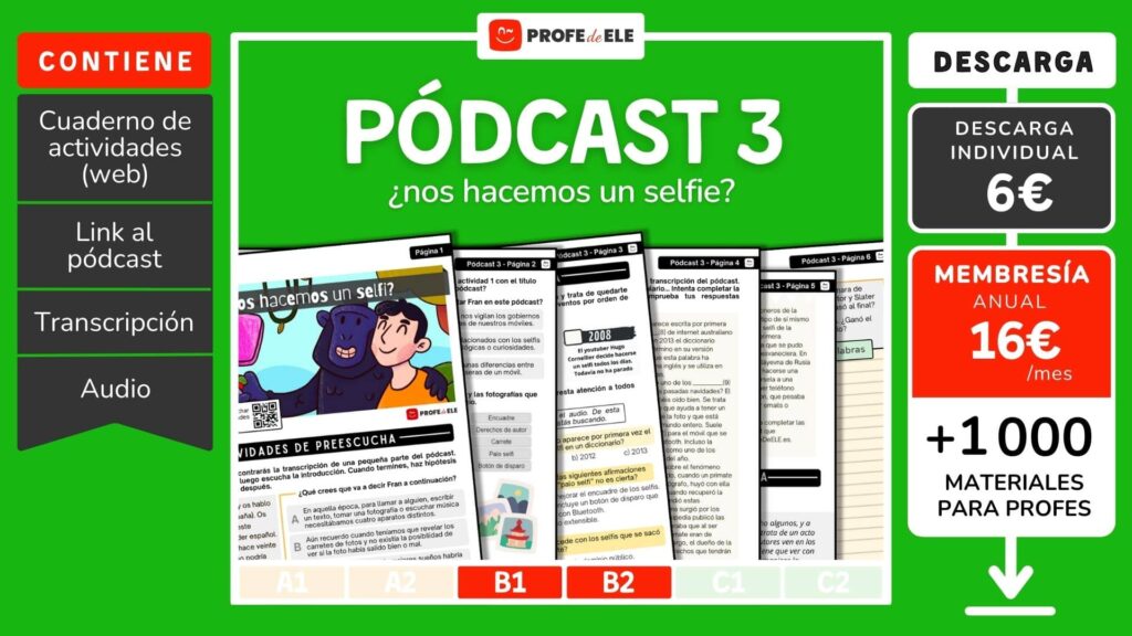 El título del podcast es “¿Nos hacemos un selfi?”. ¿Te sueles sacar selfis? ¿En compañía de quién o quiénes? Describe alguna situación en la que te tomarías un selfi.