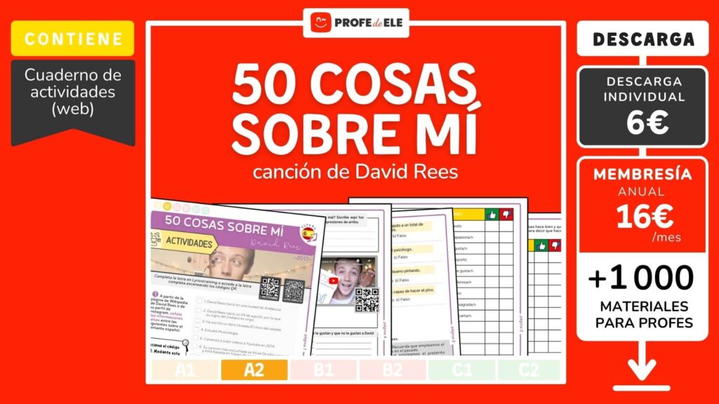 Vamos a conocer 50 cosas sobre David Rees en un vídeo en el que se presenta. Pero antes, trabajaremos sobre cómo nos presentamos. Cuando una persona se presenta, dice qué le gusta y qué no le gusta. Además de gustar y no gustar, hay otros verbos para expresar gustos y rechazos.