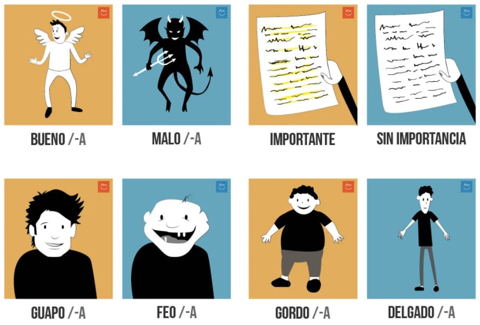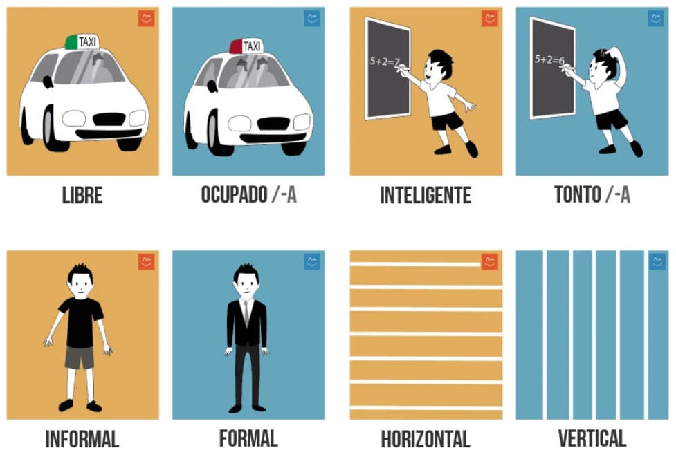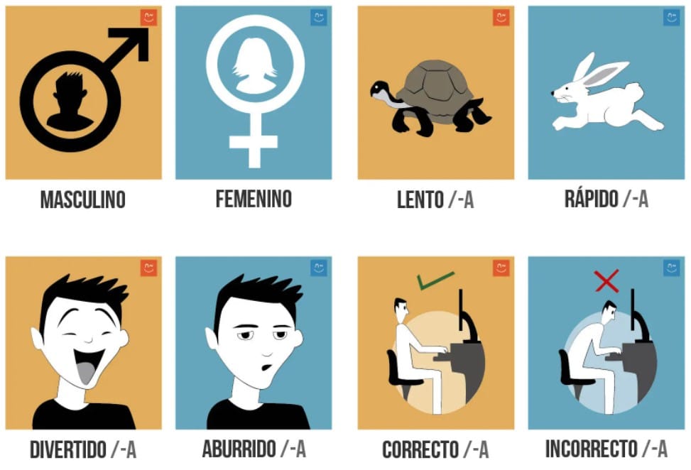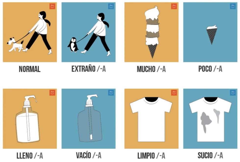 Vocabulario ilustrado de los adjetivos en español (del 41 al 80)