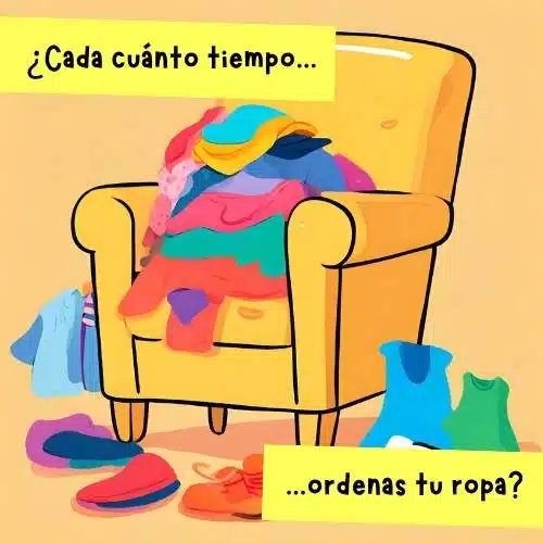 - Actividad 4: En esta actividad se ofrece la posibilidad de realizar un test para saber si somos o no personas ordenadas. Mientras compartes cada una de las preguntas en la pantalla para gestionar la comprensión lectora, puedes llevar a cabo el ejercicio a nivel individual (aunque de forma simultánea) y más tarde compartir los resultados. Después, plantea preguntas de interacción oral a partir de los resultados y aprovecha para repasar el vocabulario de las emociones en español. Por ejemplo: ¿Cómo te sientes cuando todo está desordenado? ¿Eres el/la único/a ordenado/a o desordenado/a de tu familia? ¿Cuándo te sientes más a gusto en tu cuarto?.