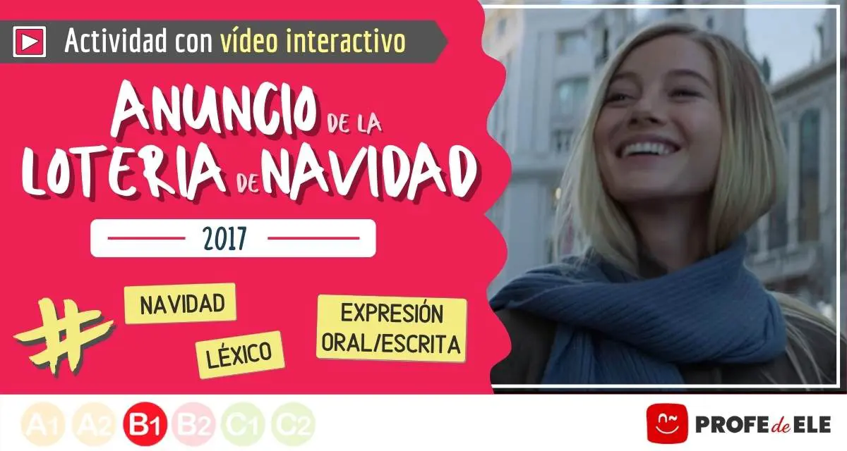 Actividad para practicar la comprensión y la expresión en español nivel b1, con ejercicios interactivos basado en el anuncio de la lotería de 2017