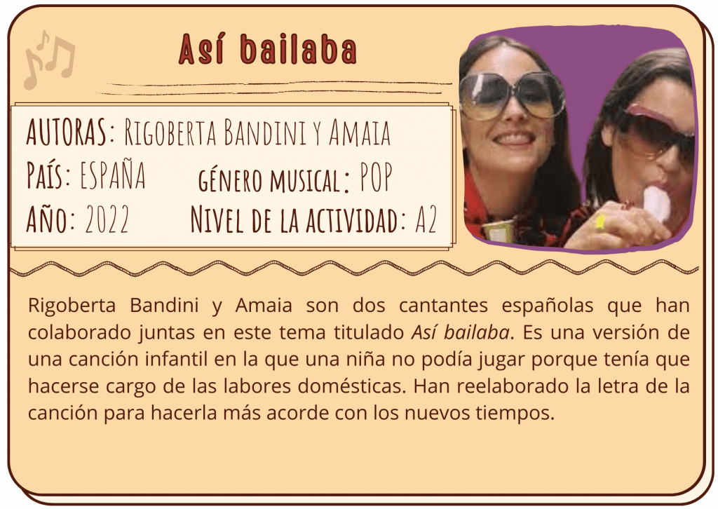 Vamos a escuchar una canción titulada Así bailaba, cantada por Amaia y Rigoberta Bandini.