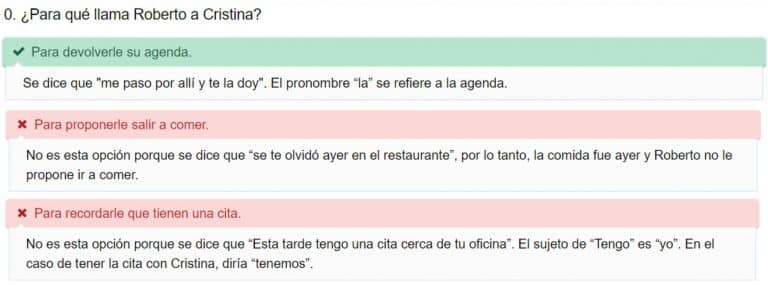 - Ten en cuenta que la opción correcta es una paráfrasis (repetición con otras palabras) de una frase del audio.