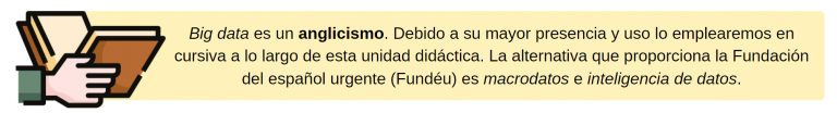Como has podido deducir, los gigantes de internet saben muchas cosas de nosotros gracias al manejo de macrodatos o big data. Completa el siguiente texto para obtener una definición del big data adaptada de Wikipedia.