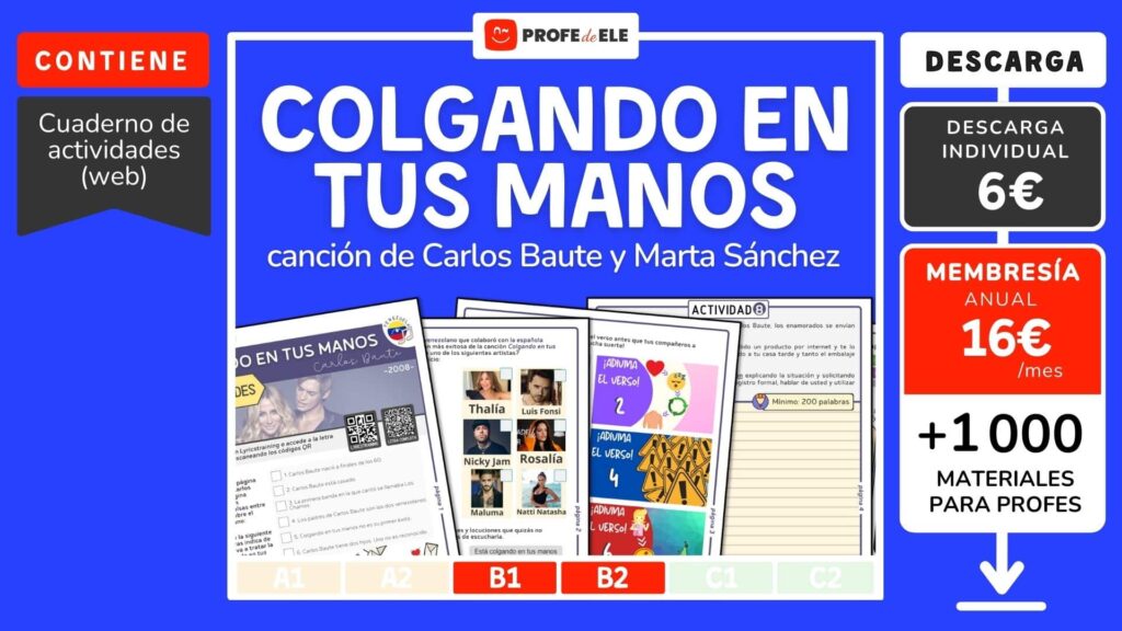 Carlos Baute dice en la canción que está “colgando” en las manos de su amada. ¿Y tú? ¿Qué estás haciendo ahora mismo? Mira a tu alrededor. ¿Qué están haciendo las personas de tu entorno?