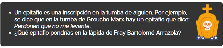 Tras haber hecho este inciso gramatical, volvemos a Fray Bartolomé Arrazola. Antes de leer el final del texto, haz tus hipótesis de cómo va a terminar el microrrelato.