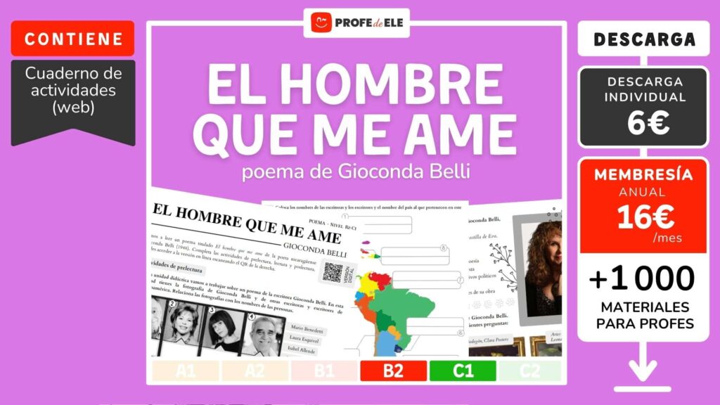 Si te interesan los recursos complementarios de esta secuencia didáctica, los puedes conseguir pagando una pequeña cantidad (ver final de esta página) o puedes suscribirte a una de nuestras membresías y acceder a todos nuestros materiales de español.