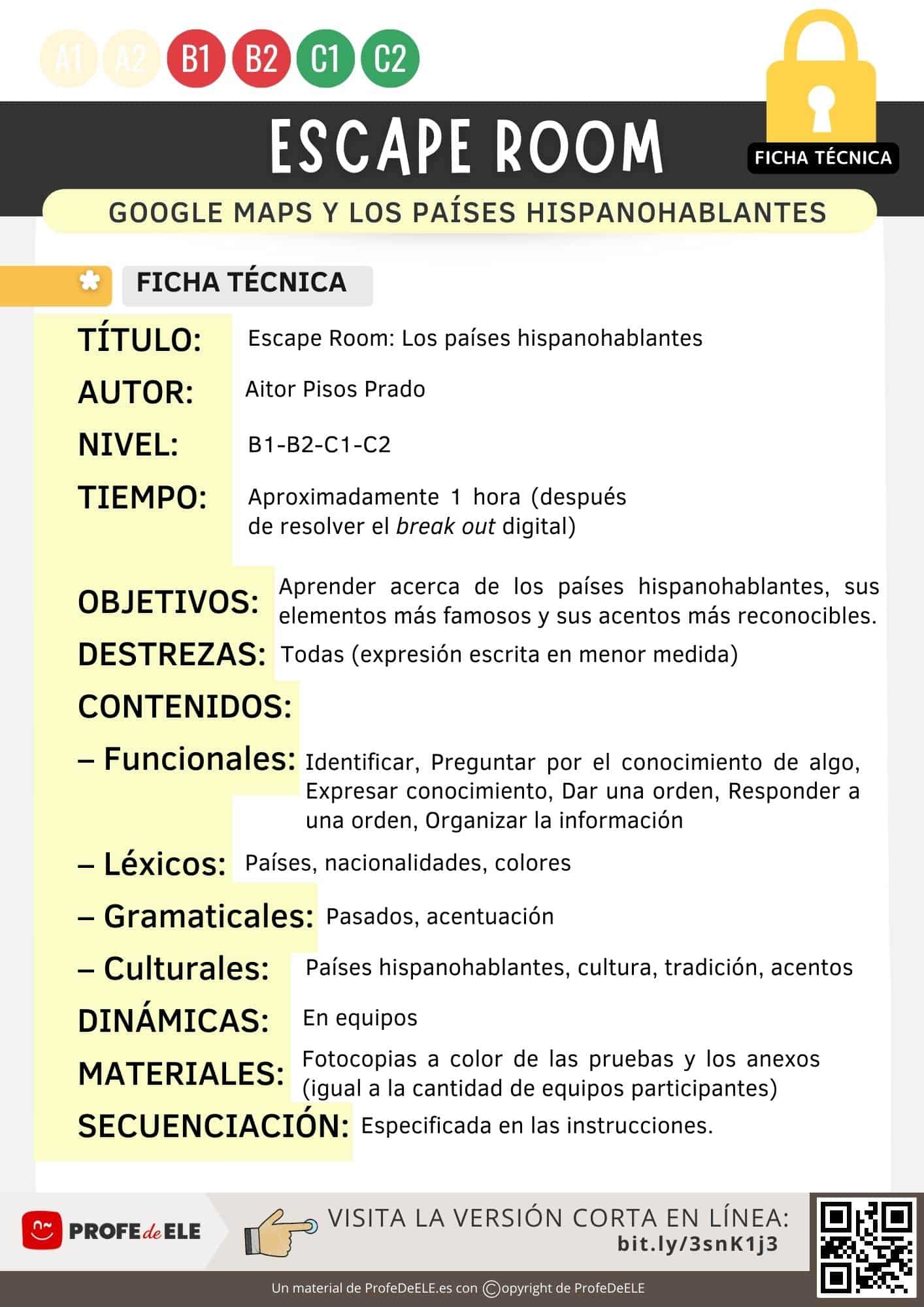 ¡Enhorabuena! Habéis hecho un gran trabajo en la miniescape room anterior. ¿Quieres ponerte más a prueba? Juega con tus compañeras y compañeros de clase a la parte 2 del Escape Room: Los países hispanohablantes.