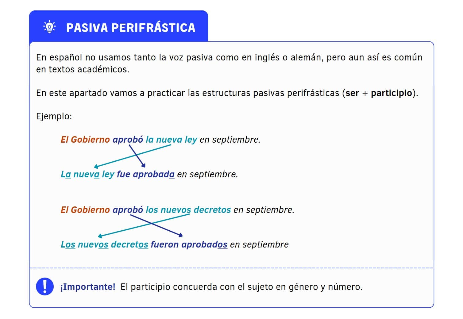 Lee con atención la explicación sobre las pasivas perifrásticas: