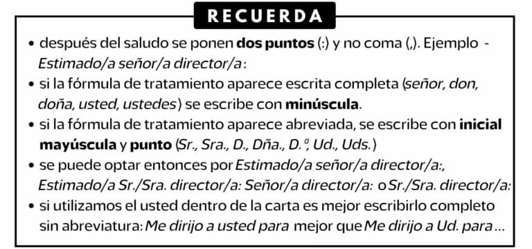 - El saludo y la despedida se hacen con fórmulas breves. Lo importante es el contenido.