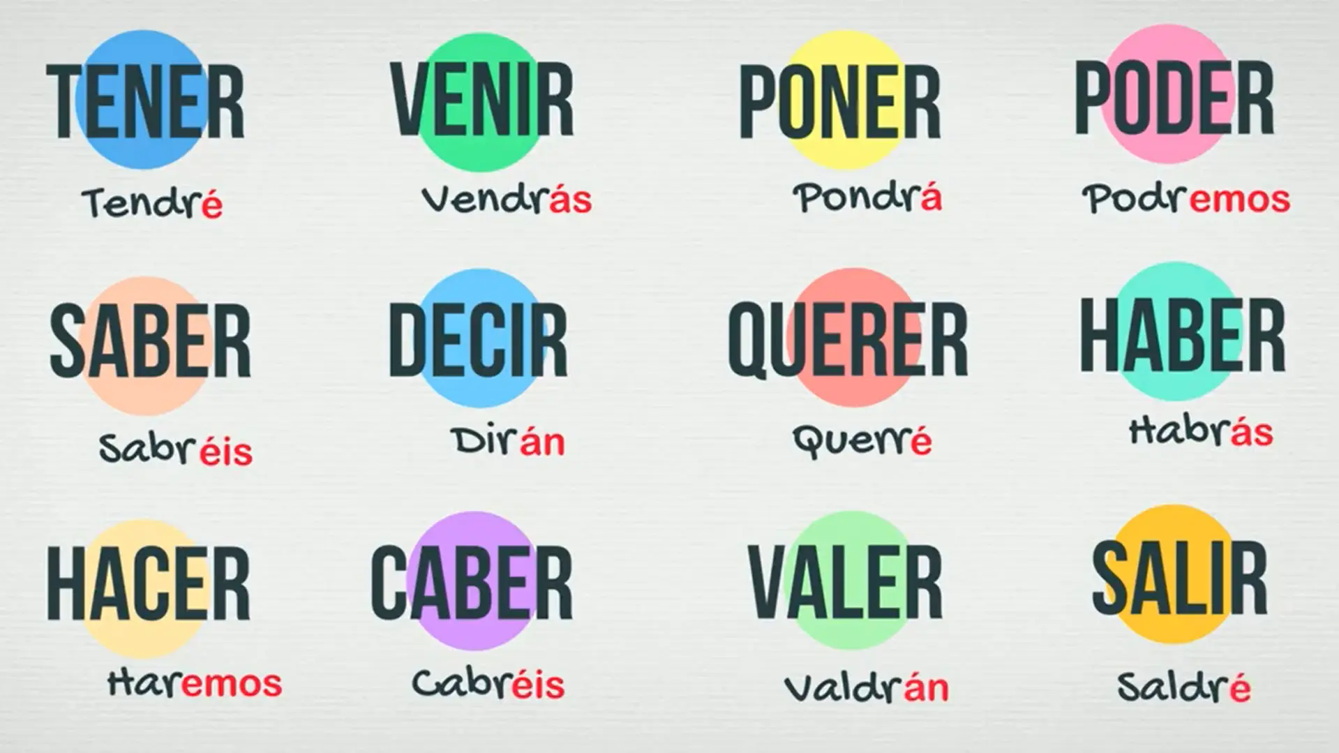 Encuentra en la sopa de letras los 12 verbos irregulares. Los encontrarás conjugados en futuro, en la forma nosotros.