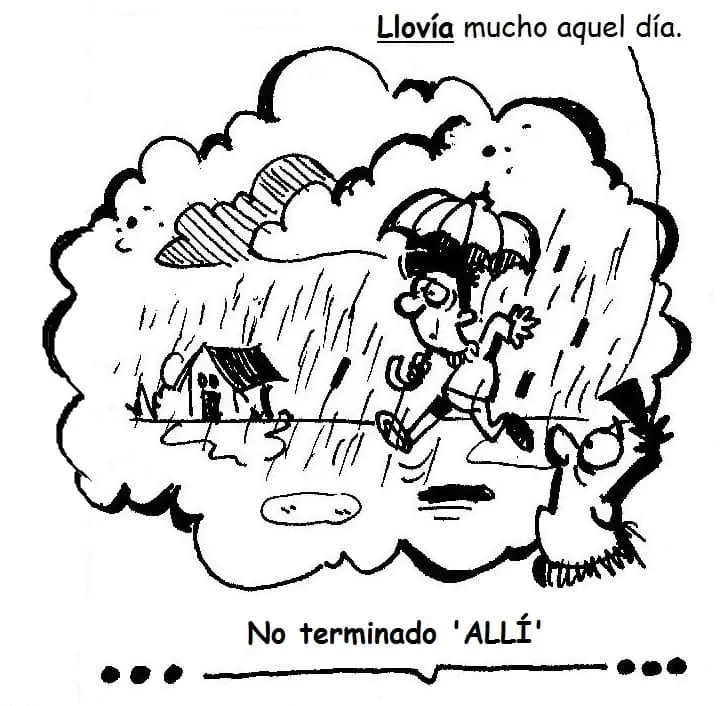 Con el imperfecto nos colocamos dentro de un hecho pasado y describimos un proceso no terminado ‘ALLÍ’.
