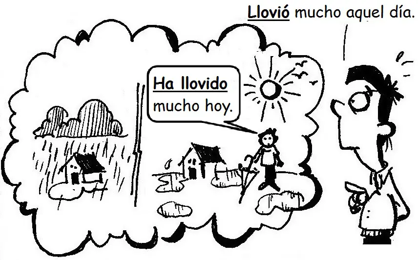 Con el indefinido nos colocamos después de un hecho pasado y contamos un acto o un proceso terminado ‘ALLÍ’.