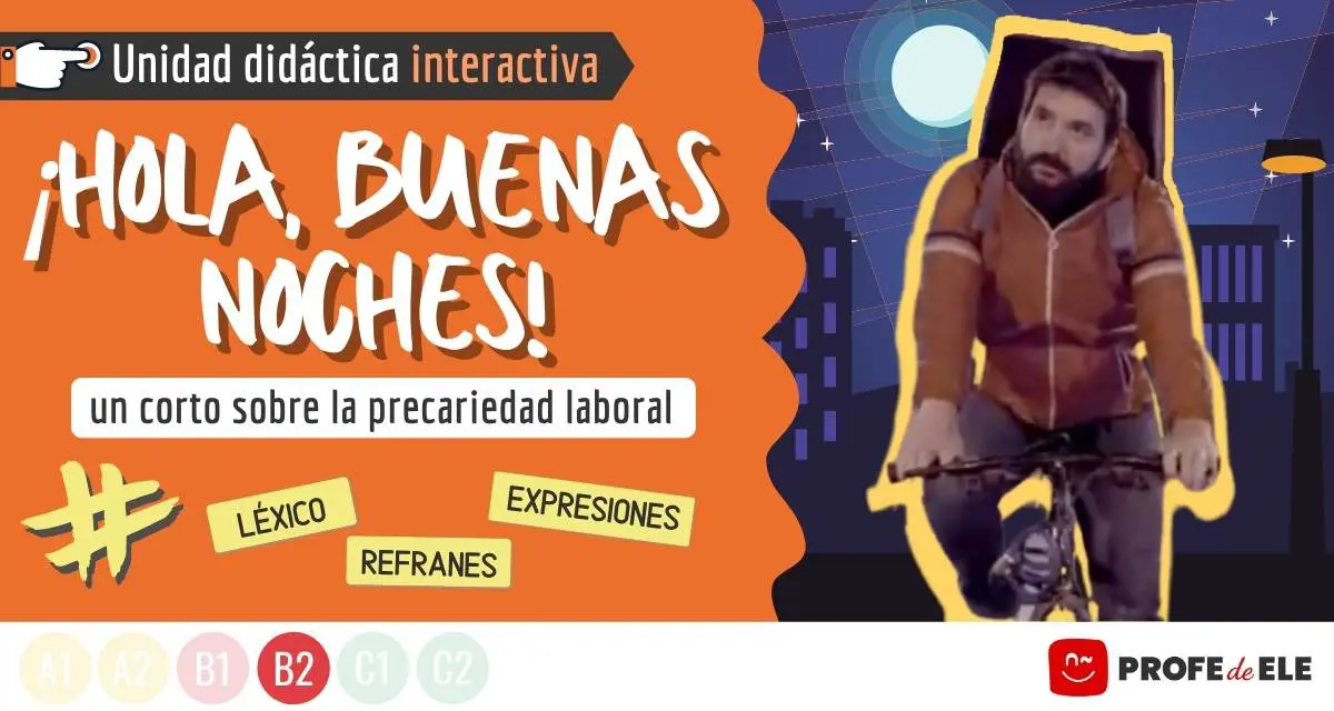 Cortometraje sobre los repartidores a domicilio para trabajar el registro coloquial, las colocaciones sobre el trabajo y los nexos consecutivos. Nivel B2.
