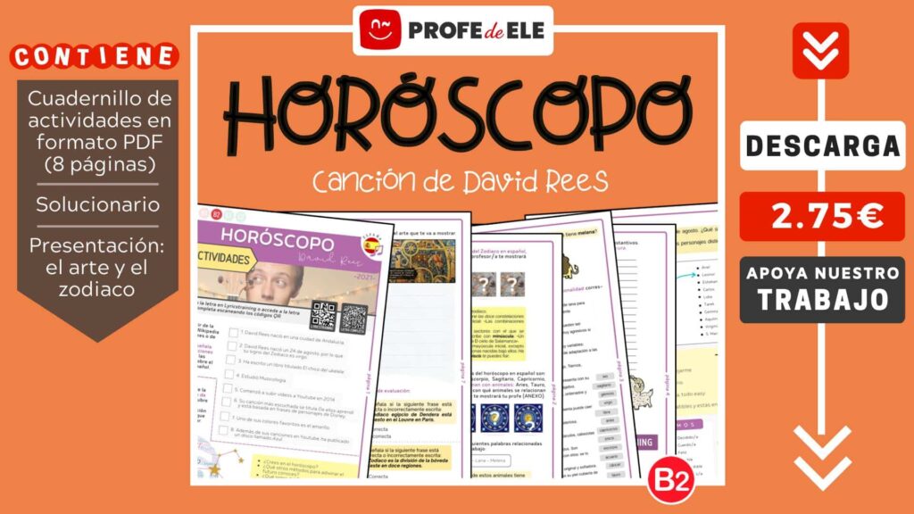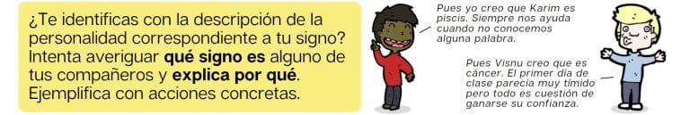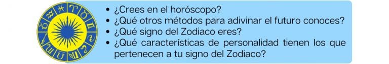 • Gracias por esto. Al principio les mostré el zodiaco, como es la personalidad de cada signo, y tenian que confirmar o no, y luego lo mismo con otros alumnos y familiares. Luego el vocabulario de la personalidad con los sustantivos y contrarios. La cancion Horoscopo fue un éxito total. 🙂