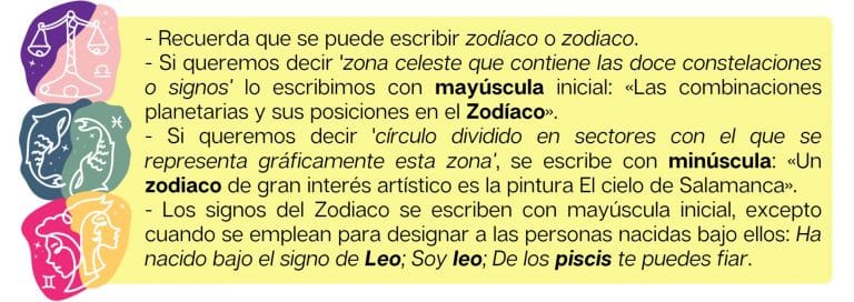Como has visto en la actividad anterior, los signos del horóscopo en español son: Aries, Tauro, Géminis, Cáncer, Leo, Virgo, Libra, Escorpio, Sagitario, Capricornio, Acuario y Piscis.
