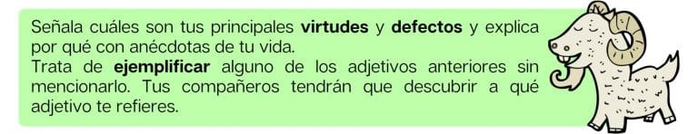 Ahora vais a practicar los adjetivos de descripción de personalidad y a representar una pequeña escena con las instrucciones del siguiente imprimible.