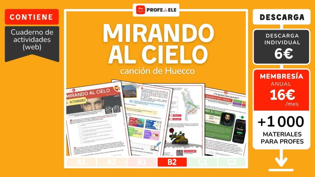 A partir de la ficha informativa, de la página web oficial del artista, y de su página en Wikipedia, señala dos informaciones falsas entre las siguientes sobre Huecco y su canción Mirando al cielo.