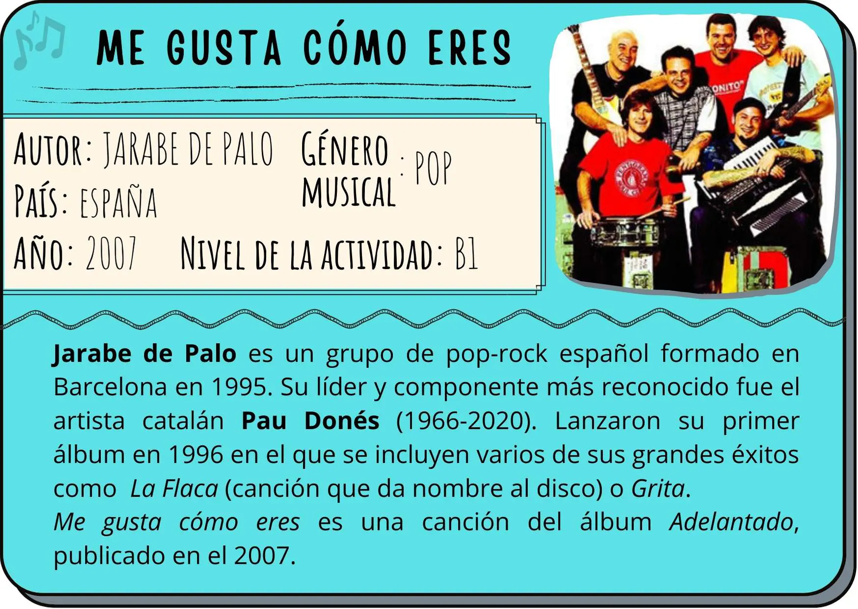 A partir de la ficha informativa, de la página web oficial del grupo, de su página en Wikipedia y de la página de Wikipedia de Pau Donés, señala dos informaciones falsas entre las siguientes sobre Jarabe de Palo.