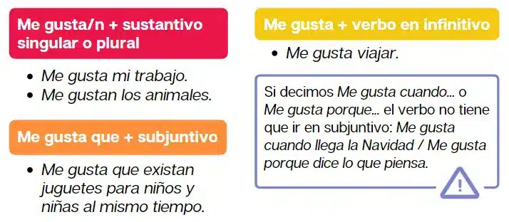 Observa esta infografía relativa al verbo gustar.