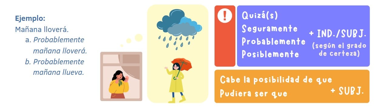 A continuación encontrarás oraciones que expresan seguridad. Tu tarea es reformular cada una de estas oraciones para que expresen probabilidad o posibilidad usando los siguiente...