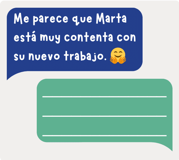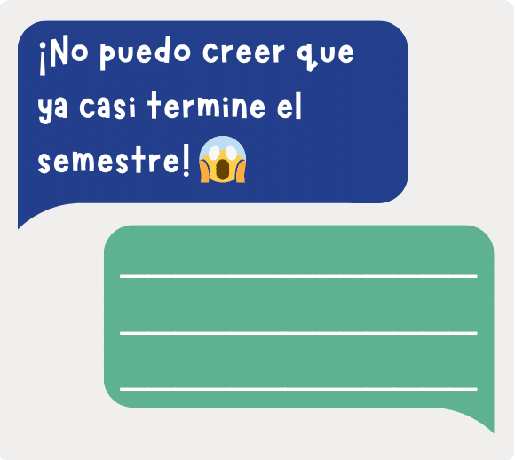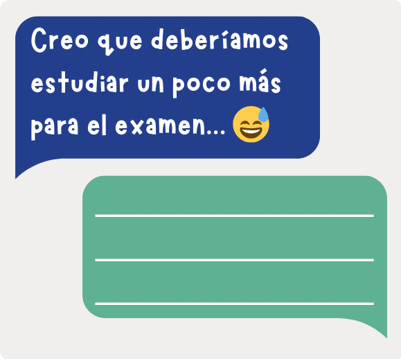 • Actividad 9: Responde a los mensajes. Esta actividad pretende promover la interacción escrita: tus estudiantes responderán a los mensajes de texto por escrito reafirmando la idea con algún marcador de los propuestos. En caso de trabajarla con adolescentes o adultos en un contexto en grupo, puedes proponer la actividad entre dos compañeras o compañeros que simulen la conversación en WhatsApp para compartir el pantallazo del mensaje y la respuesta y hacerlo así más realista.