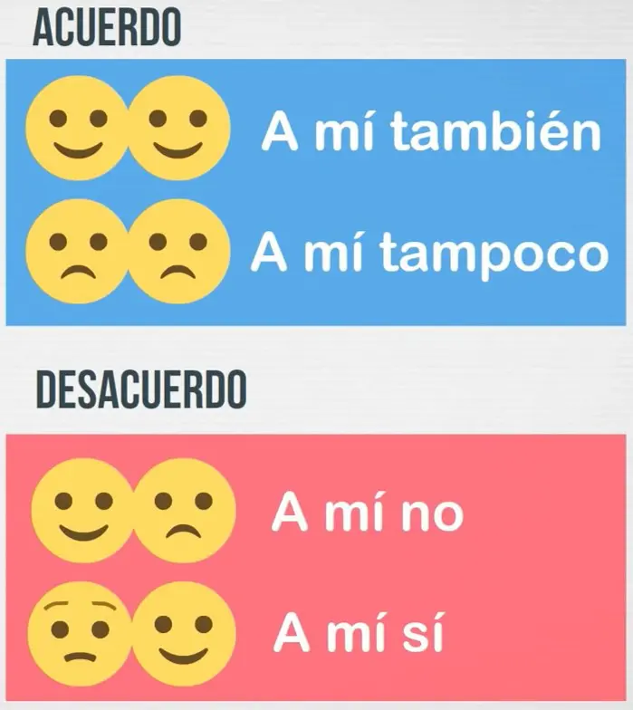 Además, te ofrecemos dos ejercicios enfocados en las expresiones «también», «tampoco», «a mí sí» y «a mí no», aspectos esenciales en la conversación en español. Estos ejercicios te permitirán practicar cómo comparar tus gustos con los de otras personas, una habilidad esencial para cualquier estudiante de español.