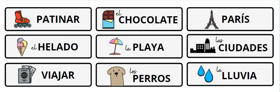 Además, tendrás también 18 tarjetas con texto e imagen que te ayudarán a buscar y practicar estas estructuras en una variedad de contextos, mejorando así tu habilidad para hablar sobre gustos y disgustos en español, y avanzando en tu comprensión de la gramática y ortografía del idioma.