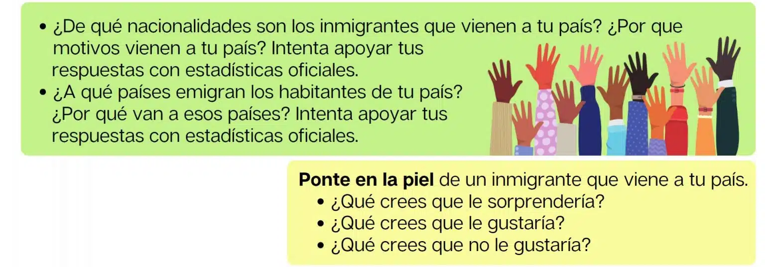 – Habla con tus compañeros para hacer hipótesis de por qué crees que dejaron su país y a qué problemas tuvieron que enfrentarse cuando llegaron a España.