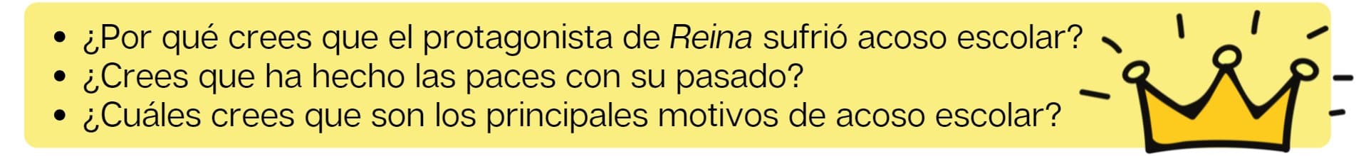 La canción «Reina» habla sobre el bullying y la homofobia que el vocalista de Miss Caffeina sufrió cuando era pequeño. La letra narra cómo la intolerancia y el rechazo a la diversidad afectaron su infancia y cómo, con el tiempo, aprendió a reconciliarse con ese pasado y a vivir con orgullo su identidad. Este es un tema pertinente para niños, adolescentes y adultos y permite incluir la reflexión en la clase de español.