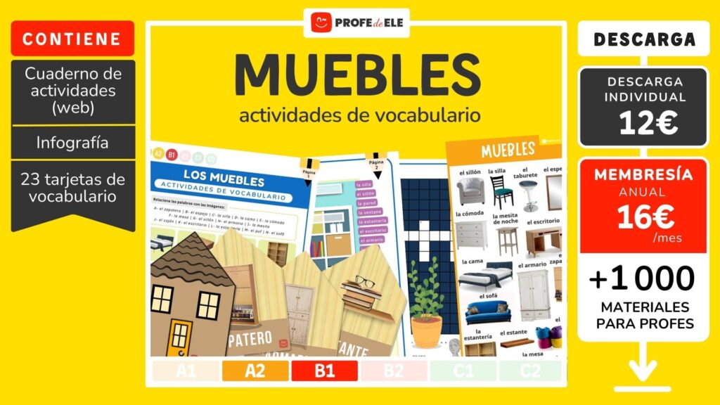 Si te interesan los recursos complementarios de esta secuencia didáctica, los puedes conseguir pagando una pequeña cantidad (ver final de esta página) o puedes suscribirte a una de nuestras membresías y acceder a todos nuestros materiales de español. Desde contenidos de cultura, del subjuntivo, de preposiciones, imperativo o descripción de imágenes, en ProfedeELE te ayudamos a llevar el español a clase de forma divertida.