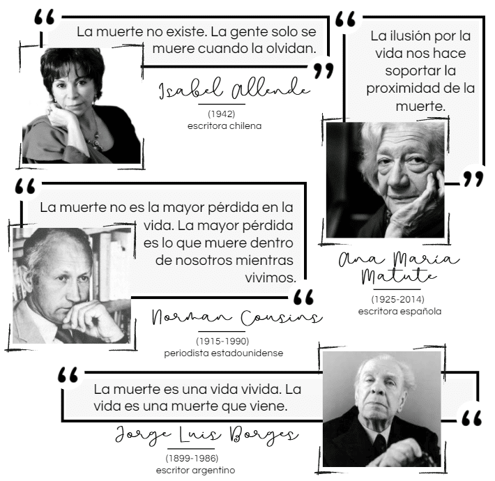 Comenta libremente estas cuatro citas sobre la muerte señalando si estás a favor o en contra, y razonando y ejemplificando tu respuesta.