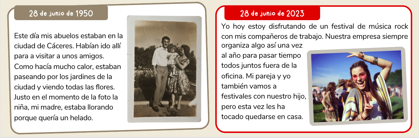 Después, escribe tú también sobre qué estaban haciendo tus abuelos un día cualquiera de hace 60 años y qué estás haciendo tú hoy.