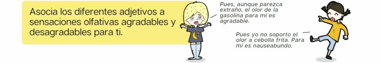 Ahora arrastra a la izquierda los adjetivos que indican olores desagradables y a la derecha los adjetivos que indican olores agradables.
