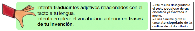 Ahora realiza las actividades de abajo relativas a adjetivos relacionados con el tacto.