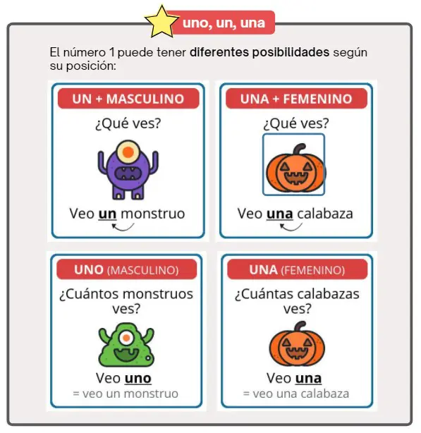 Recuerda que los números que acaban en 1 (excepto 11) y los cientos (200, 300…) tienen una marca para el masculino y otra para el femenino dependiendo de su lugar: