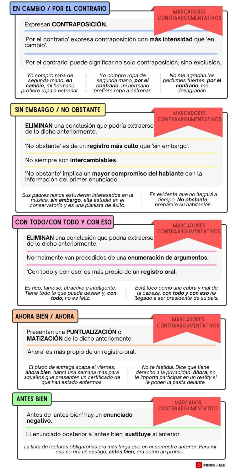 En el texto de la actividad 7 aparecen en azul unos marcadores contraargumentativos. Estos marcadores introducen un elemento que suprime o matiza una conclusión que se podría obtener del primero.