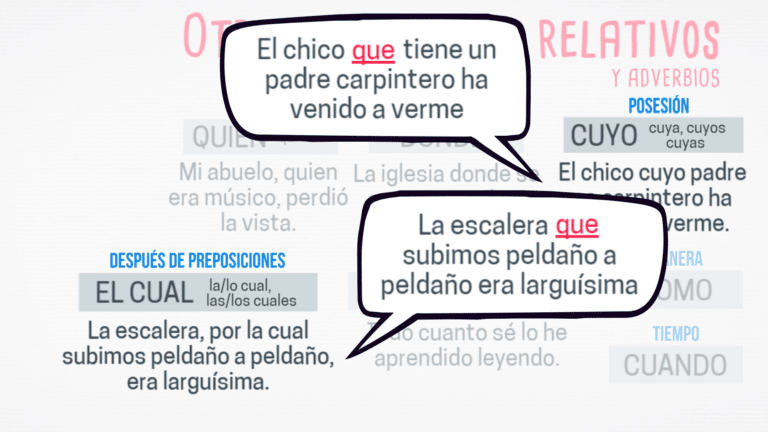 Otros pronombres y adverbios relativos (cuyo, cuanto, quien, donde)