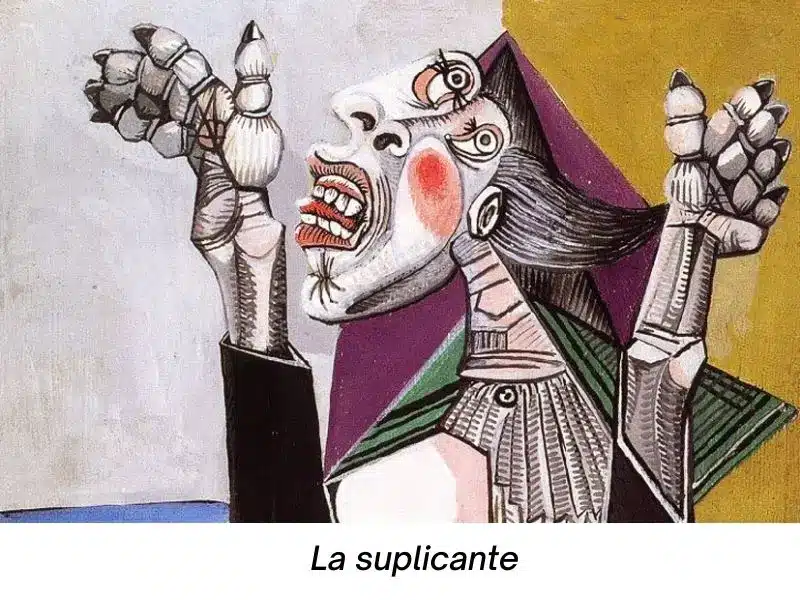El Guernica es el cuadro más conocido de Picasso y representa el bombardeo que sufrió una pequeña ciudad del País Vasco (norte de España), liderado por los alemanes e italianos durante la Guerra Civil. Ningún elemento del cuadro está ahí por casualidad: todos tienen algún significado. Descúbrelo haciendo clic en la siguiente imagen interactiva: