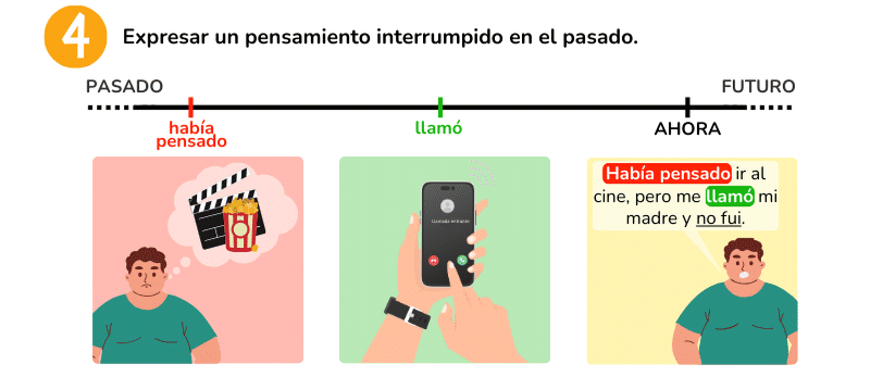 Finalmente, podemos utilizar el pluscuamperfecto para expresar un pensamiento o creencia interrumpido en el pasado.