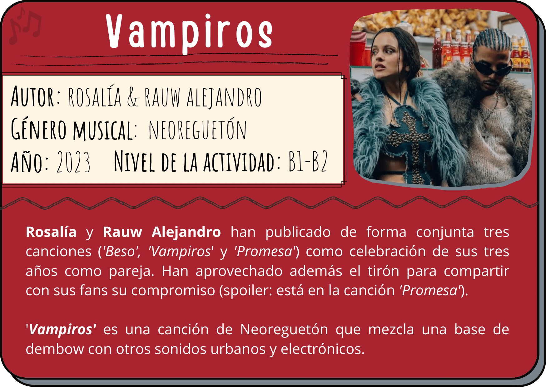 Escucha la canción de Rosalía y Rauw Alejandro con el título ‘Vampiros’. En la ficha que tienes a continuación puedes encontrar información general sobre el tema.