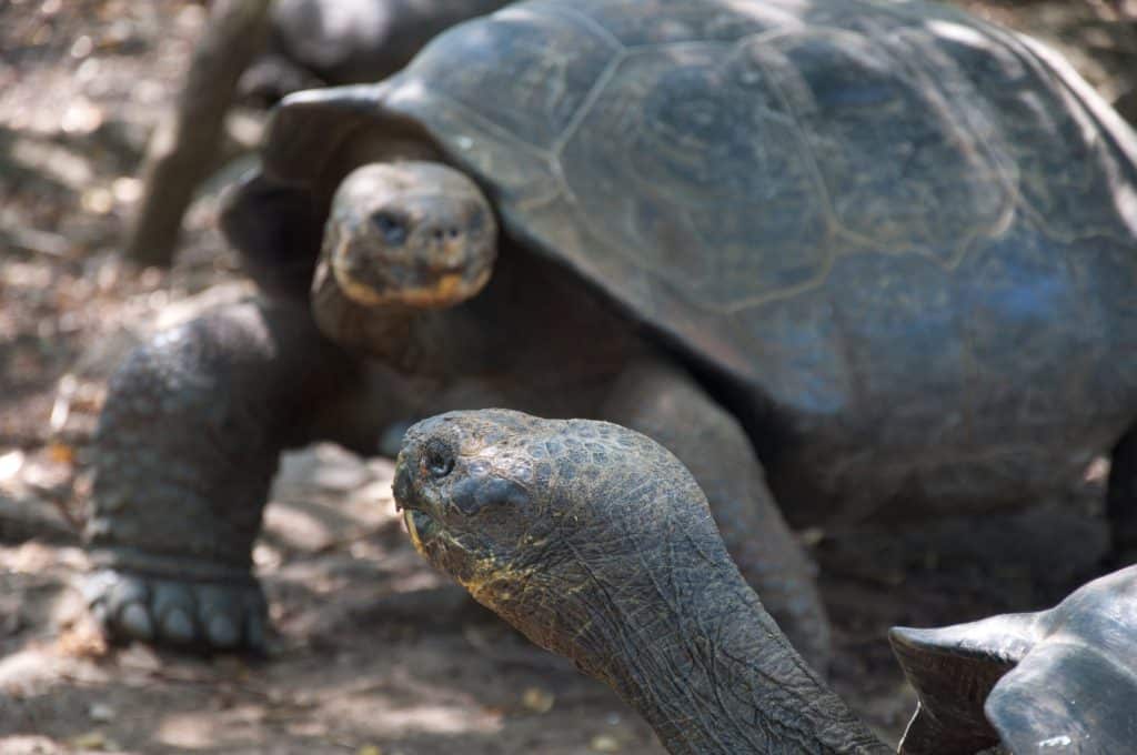 Hoy en día es muy sencillo ver estas tortugas en las reservas, en centros de crianza (11) y en su estado natural. De hecho, es sencillo ver a todos los animales; este es el principal atractivo de las islas. Iguanas marinas, lobos de mar (12), pingüinos, tortugas marinas, piqueros de patas azules (13), pinzones (14), tiburones, rayas… están literalmente al alcance de tu mano y, al no haber tenido nunca grandes depredadores, no se asustan del hombre. Es sorprendente ver la armonía en la que conviven las distintas especies. Uno puede llegar a ver, compartiendo espacio en una misma roca a una iguana, un par de lobos marinos, un grupo de pingüinos y alguna que otra ave. Al haber superabundancia de alimento en el mar, no existen disputas territoriales. Precisamente por eso, uno de los grandes atractivos de las islas es la de bucear (15) con tiburones sin temor a ser atacados, pues están saciados (16) por la abundancia de peces.