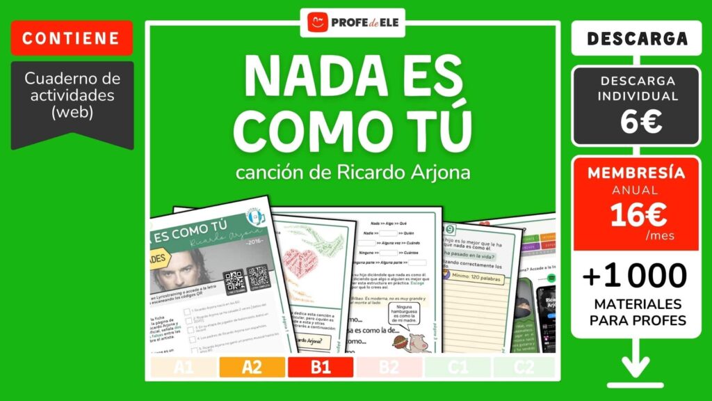 No hay nadie como tú de Calle 13 (accederás al ejercicio de ProfedeEle pinchando en la imagen) y Tutu de Camilo y Pedro Capó.