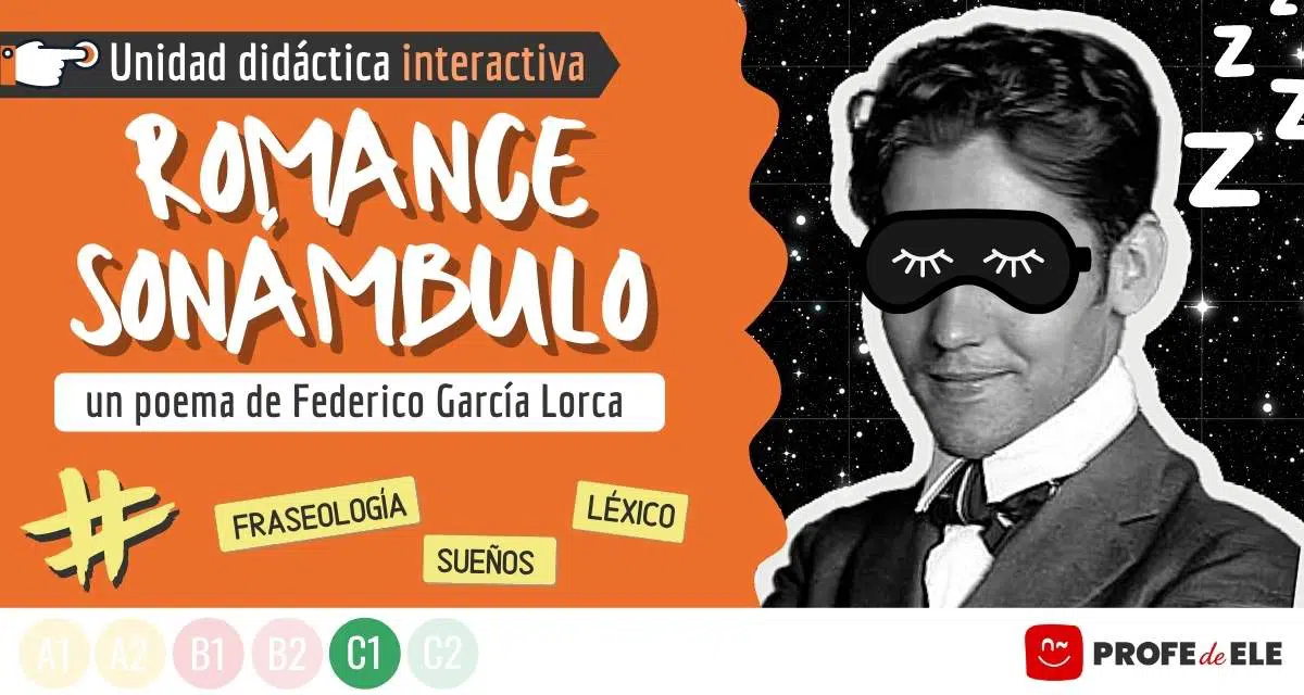 El poema de Lorca que vamos a leer se titula Romance sonámbulo. Sabes que sonámbulo es alguien que mientras está dormido se levanta, anda, habla y realiza ciertos actos que no recuerda al despertar. De hecho, el Romance sonámbulo casi parece la narración de un sueño.