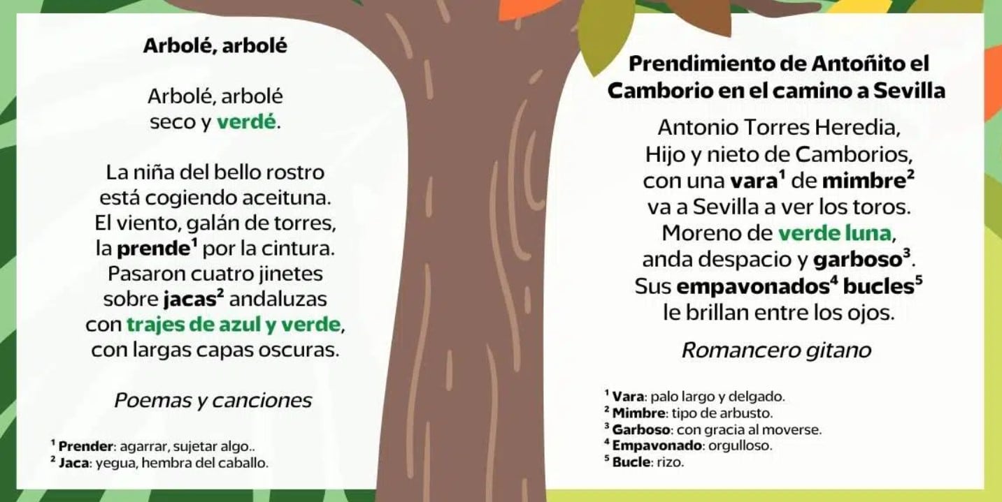 El Romance sonámbulo empieza con los famosos versos Verde que te quiero verde./ Verde viento. Verdes ramas.