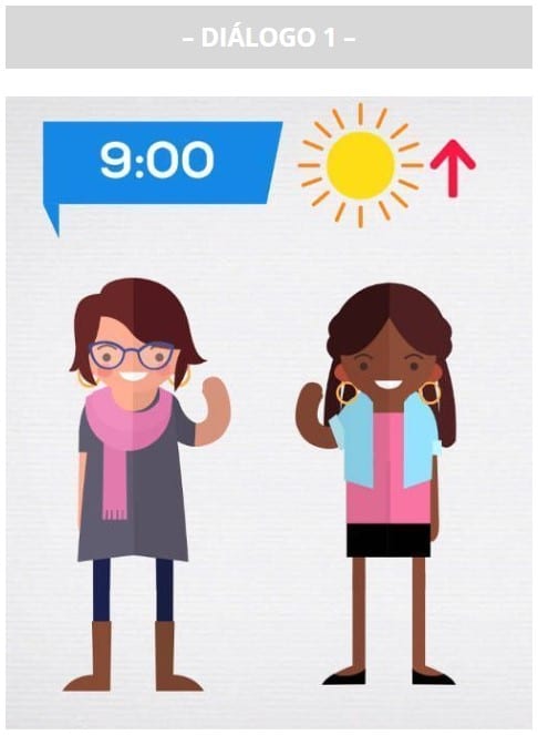 Después de saludar, podemos preguntar cómo está la otra persona. Lee el diálogo de ejemplo: