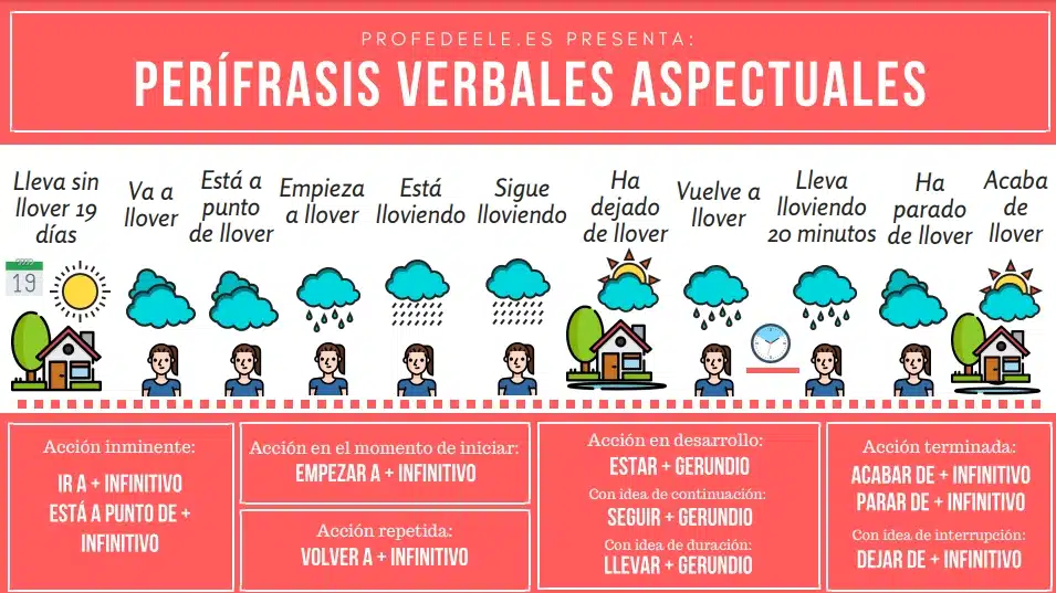 Observa la siguiente infografía con las perífrasis aspectuales y completa el ejercicio de abajo.