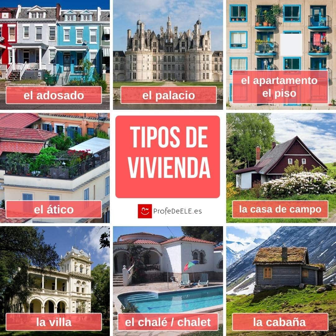 Repasa el vocabulario de los tipos de vivienda con esta infografía interactiva y completa con cada información adicional. Puedes buscar en el diccionario las palabras que no conoces.