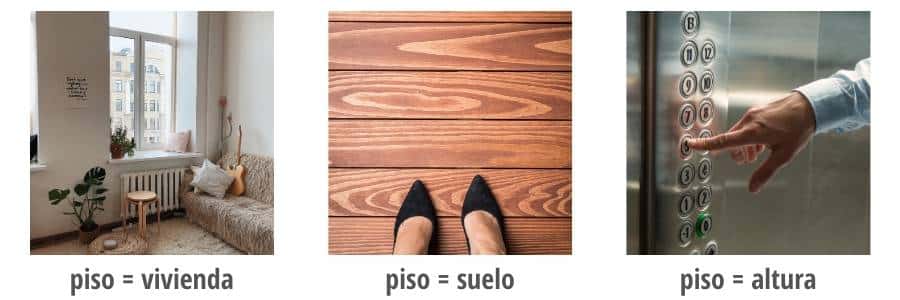Hay que tener cuidado de no confundir la palabra piso, que acabamos de explicar, con estos otros dos significados bien diferentes: el primero como sinónimo de altura (vivo en el séptimo piso por eso subo siempre en ascensor) y el segundo como sinónimo de suelo (el piso está sucio, hay que lavarlo).
